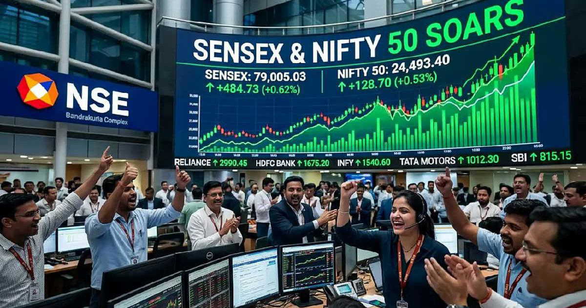नई दिल्ली: घरेलू शेयर बाजार में आज शुरुआती कारोबार के दौरान तेजी का रुख बना हुआ नजर आ रहा है। आज के कारोबार की शुरुआत मामूली बढ़त के साथ हुई थी। बाजार खुलने के कुछ देर बाद ही खरीदारों ने लिवाली का जोर बना दिया, जिसकी वजह से सेंसेक्स और निफ्टी दोनों सूचकांकों की चाल में तेजी आ गई। सुबह 10 बजे तक का कारोबार होने के बाद सेंसेक्स 0.63 प्रतिशत और निफ्टी 0.56 प्रतिशत की मजबूती के साथ कारोबार कर रहे थे। आज प्रातः 10 बजे तक का कारोबार होने के बाद स्टॉक मार्केट के दिग्गज शेयरों में से नेस्ले इंडिया, एक्सिस बैंक, एशियन पेंट्स, अदानी पोर्ट्स और टाटा कंज्यूमर प्रोडक्ट्स के शेयर 1.68 प्रतिशत से लेकर 0.72 प्रतिशत की मजबूती के साथ कारोबार कर रहे थे। दूसरी ओर, एसबीआई लाइफ इंश्योरेंस, एचडीएफसी लाइफ, डॉ रेड्डीज लेबोरेट्रीज, इंफोसिस और जियो फाइनेंशियल के शेयर 3.19 प्रतिशत से लेकर 0.50 प्रतिशत की गिरावट के साथ कारोबार करते हुए नजर आ रहे थे।