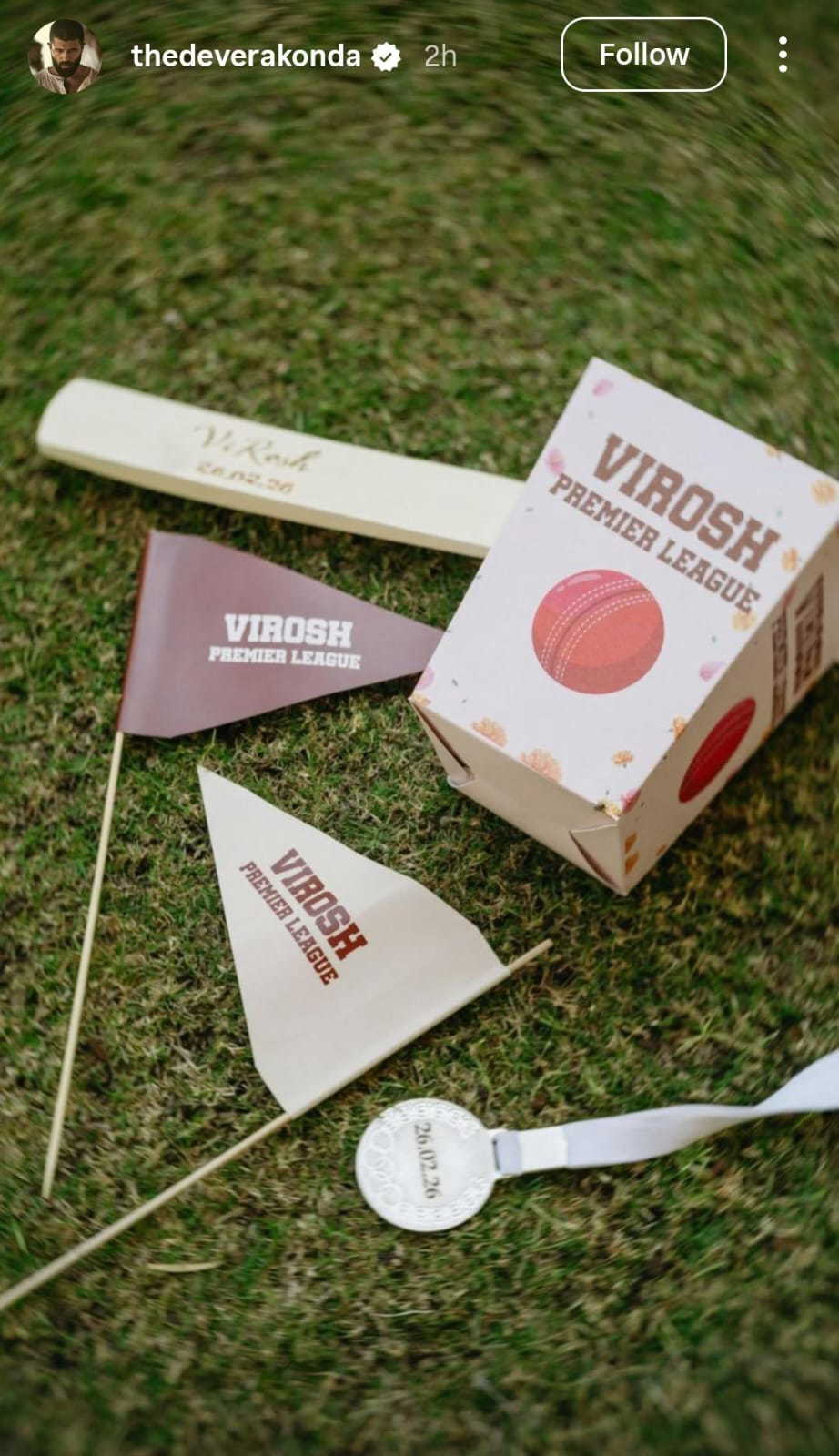 रश्मिका मंदाना और विजय देवरकोंडा अपने वेडिंग वेन्यू से जुड़ी झलक लगातार सोशल मीडिया पर शेयर कर रहे हैं। विजय ने एक फोटो शेयर किया है, जिसमें एक बॉक्स और दो छोटे-छोटे झंडे जैसी आकृति दिखाई दे रही है। इन पर ‘VIROSH’ प्रीमियर लीग लिखा हुआ है। वहीं रश्मिका मंदाना ने भी कई फोटो शेयर किए हैं, जिसमें से एक फोटो खाने की टेबल का है। हालांकि टेबल पर खाने का मेन्यू की धुंधली तस्वीर दिखाई दे रही है लेकिन पिस्ता रंग के इस टेबल मैट पर लिखा ‘VIROSH’ लिखा हुआ स्पष्ट नजर आ रहा है।