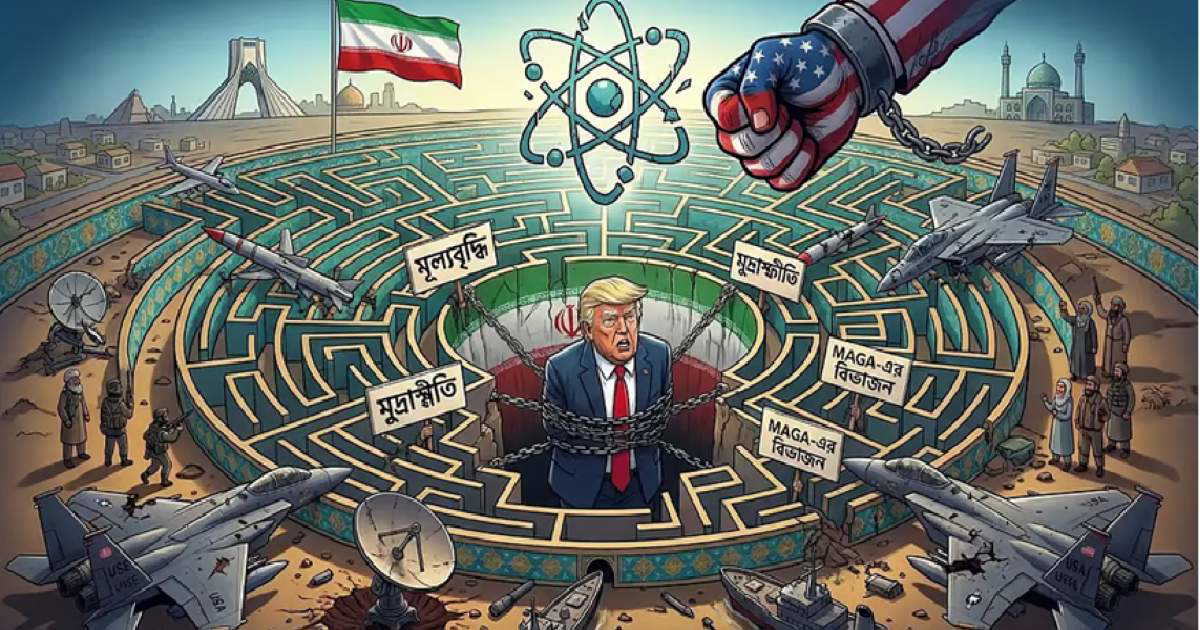 और स्थिति उसी दिशा में बढ़ती दिख रही है। ईरान विशेषज्ञ एली गेरानमायेह के अनुसार ट्रंप चाहें तो शुरुआत में ही खामेनेई की हत्या की सफलता का दावा कर युद्ध से बाहर निकल सकते थे लेकिन वह मौका चूककर अब वह अभिमन्यु के चक्रव्यूह में फंसने की तरह फंस गए हैं।