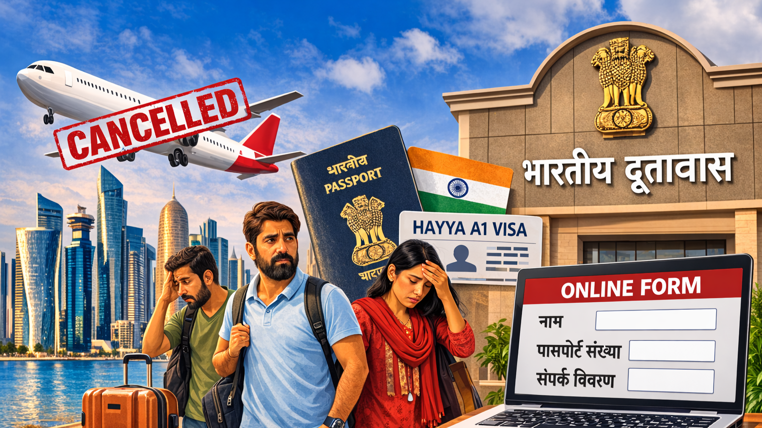 एक्स पर एक पोस्ट में दूतावास ने कहा, “परामर्श: वे भारतीय नागरिक जो वर्तमान में 28 फ़रवरी से 7 मार्च 2026 के बीच कतर से उड़ानों के रद्द होने के कारण कतर में पर्यटक/अल्पकालिक आगंतुक (हय्या ए-1 वीज़ा धारक) के रूप में फँसे हुए हैं, उनसे अनुरोध है कि वे यहाँ दिए गए लिंक पर अपने विवरण भरें। कृपया ध्यान दें कि यह केवल कतर के निवासी न होने वाले फँसे भारतीय नागरिकों की सटीक संख्या और विवरण का पता लगाने के उद्देश्य से है। लिंक फिर से सक्रिय कर दिया गया है: https://indianembassyqatar.gov.in/hayya_visitors