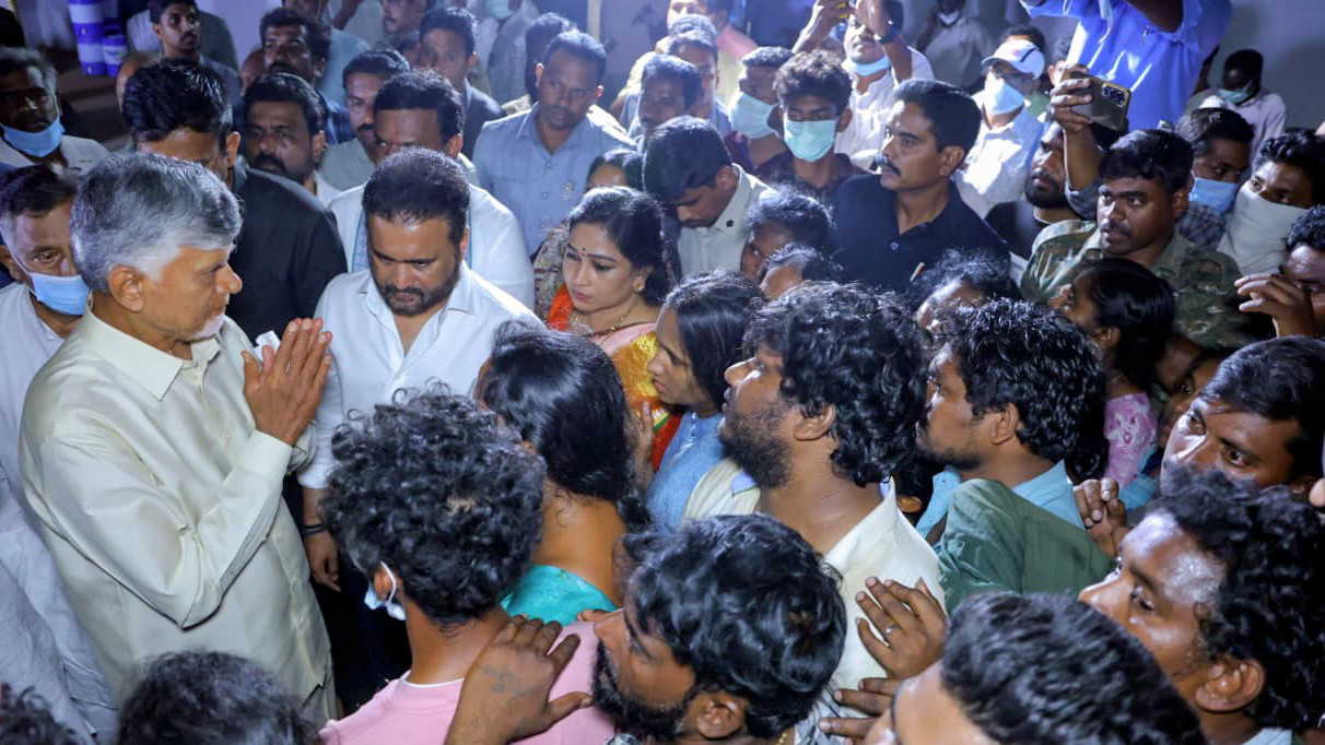 आंध्र प्रदेश के मुख्यमंत्री एन. चंद्रबाबू नायडू शनिवार को काकीनाड़ में सामलकोटा प्राथमिक स्वास्थ्य केंद्र में पटाखा विस्फोट के पीड ANi