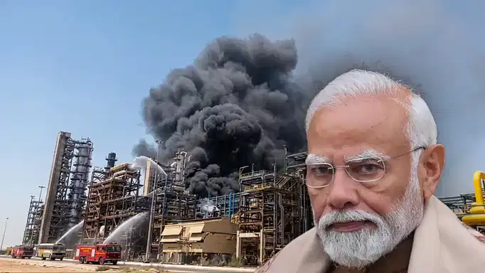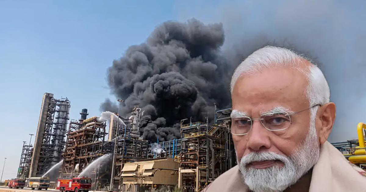 सोमवार की दोपहर को उक्त रिफाइनरी में आग लग गयी। प्रधानमंत्री मोदी के दौरे से महज एक दिन पहले ही अग्निकांड की वजह से इलाके में काफी हंगामा मच गया है।