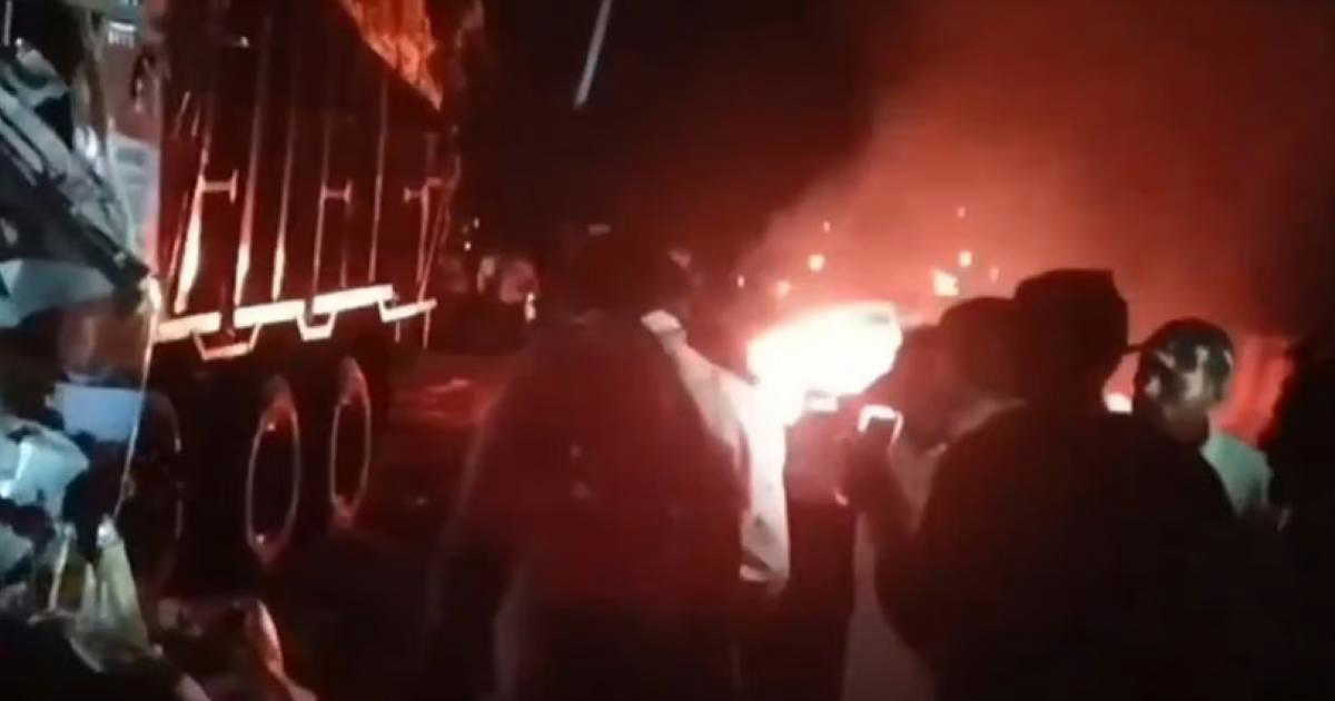 जानकारी के अनुसार आग सबसे पहले कार के टायरों में लगी और देखते ही देखते पूरी गाड़ी में फैल गई। टक्कर इतनी भीषण थी कि कार बुरी तरह क्षतिग्रस्त हो गई और उसके दरवाजे तक जाम हो गए जिससे उसमें सवार लोग बाहर नहीं निकल पाए।