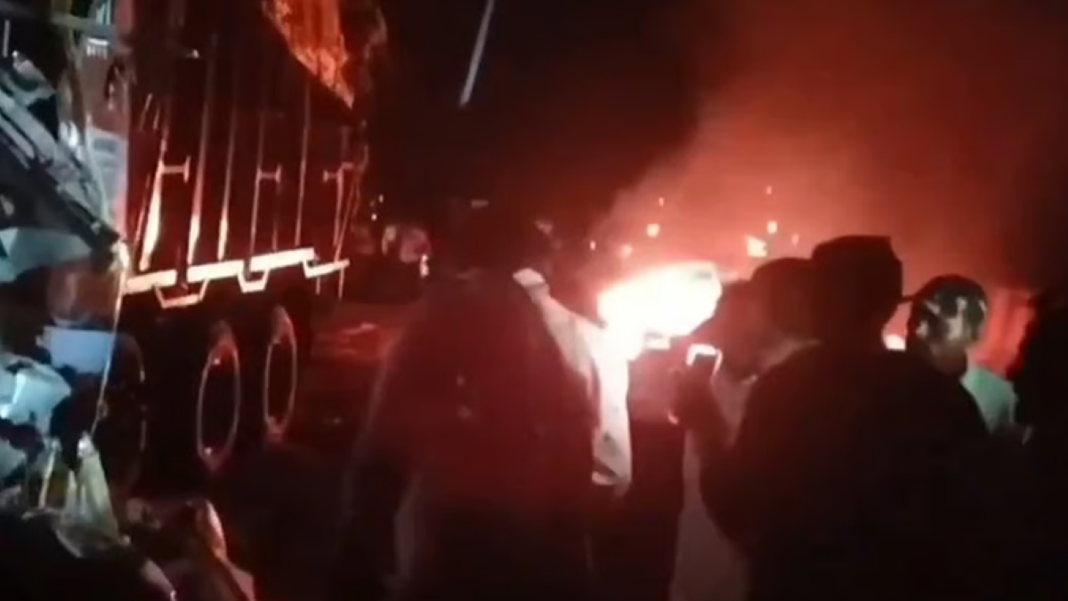 अपरणा राजत कौशिक ने जानकारी देते हुए बताया कि इस टक्कर के बाद दो ट्रकों के बीच एक कार दब गई जबकि एक अन्य वाहन भी उसी ट्रक से टकरा गया। इसी दौरान कार में आग लग गई जिससे स्थिति और भयावह हो गई।