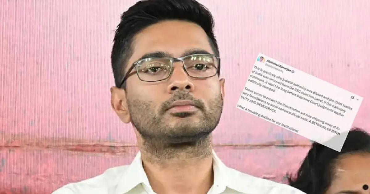 इस पोस्ट में अभिषेक बनर्जी ने लिखा है कि इसी वजह से न्यायिक अधिकार को धीरे-धीरे कमजोर कर दिया गया है। मुख्य चुनाव आयुक्त (CEC) के निर्वाचन पैनल से भारत के मुख्य न्यायाधीश को हटा दिया गया है। अगर ऐसा ही चलता रहा तो वह दिन ज्यादा दूर नहीं जब सुप्रीम कोर्ट के फैसलों पर राजनीति का ठप्पा रहेगा।