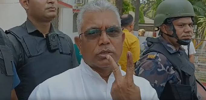 अपने मतदान केंद्र पर जाकर खड़गपुर सदर से भाजपा प्रत्याशी दिलीप घोष ने सुबह-सुबह अपना वोट दिया। मतदान करने के बाद मीडिया कर्मियों से बात करते हुए दिलीप घोष ने कहा कि मैंने अपना वोट दिया। बूथ नंबर 263। शांतिपूर्ण तरीके से ही मतदान हो रहा है।
