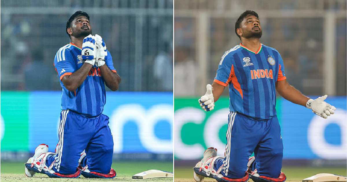 भारत को जीत दिलाने के बाद संजू घुटनों के बल जमीन पर बैठ गए। एक हाथ से हेलमेट उतारकर लगभग बगल में फेंक दिया। दोनों हाथ फैलाकर आसमान की ओर देखा। इसके बाद यीशु को धन्यवाद देने की प्रक्रिया पूरी की। अंत में दोनों हाथ जोड़कर नमस्कार की मुद्रा में भी देखा गया संजू को। तब तक नॉन-स्ट्राइकर छोर से दौड़ते हुए आ चुके थे शिवम दुबे। बाकी खिलाड़ी भी आकर उन्हें गले लगा लेते हैं।