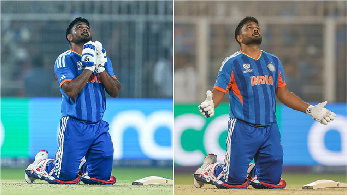 कोलकाता : 2016 में आंखों में आंसू लेकर मैदान छोड़ना पड़ा था विराट कोहली को। इसी वेस्ट इंडीज के खिलाफ हारकर भारत को टी-20 विश्व कप के सेमीफाइनल से विदा लेना पड़ा था। बेकार हो गई थी कोहली की 89 रन की नाबाद पारी। उसके बाद 10 साल बीत गए। विराट नहीं थे लेकिन मौजूद थे संजू सैमसन। उनकी 97 रन की नाबाद पारी के दम पर ही वेस्ट इंडीज को हराकर भारत टी-20 विश्व कप के सेमीफाइनल में पहुंच गया और मैच के बाद चर्चा में आ गया संजू का एक खास सेलिब्रेशन। विनिंग शॉट खेलते ही उन्होंने हेलमेट उतारकर घुटनों के बल जमीन पर बैठ गए। इस सेलिब्रेशन का क्या मतलब है? इस पर मुंह खोला संजू ने।