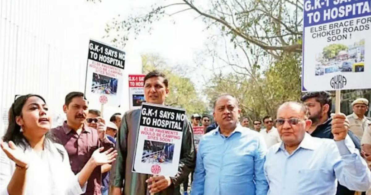 नई दिल्ली: देश की राजधानी दिल्ली के प्रतिष्ठित क्षेत्र ग्रेटर कैलाश–1 यानी जीके-1 के निवासी 400 बेड वाले निजी अस्पताल के निर्माण के विरोध में सड़कों पर उतर आए हैं। निवासी शांति से रहने देने और अपने इलाके में इतने बड़े निजी अस्पताल की आवश्यकता न होने की मांग कर रहे हैं। छुट्टी के दिनों के साथ-साथ कामकाजी दिनों में भी अवसर मिलते ही लोग सड़कों पर एकत्र होकर पोस्टर और प्लेकार्ड लेकर शांतिपूर्ण विरोध प्रदर्शन कर रहे हैं। इन प्रदर्शनकारियों में बड़े व्यवसायी, चिकित्सक, नौकरीपेशा लोग, शिक्षक, छात्र और गृहिणियां भी शामिल हैं।