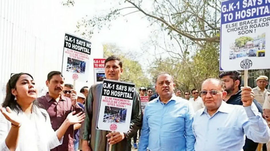दिल्ली और नेशनल कैपिटल रीजन यानी एनसीआर क्षेत्र की एक प्रभावशाली अस्पताल श्रृंखला ने ग्रेटर कैलाश के अर्चना सिनेमा हॉल कॉम्प्लेक्स के पास 400 बेड वाले अस्पताल का निर्माण कार्य कुछ समय पहले शुरू किया है। इसी निर्माण के विरोध में जीके-1 के निवासी सड़कों पर उतर आए हैं। वहां की रेजिडेंट वेलफेयर एसोसिएशन यानी आरडब्ल्यूए के चेयरपर्सन राजीव काकरिया का कहना है कि जीके के आसपास 4 से 5 किलोमीटर के दायरे में पहले से ही पांच बड़े और प्रसिद्ध निजी अस्पताल मौजूद हैं। इसके अलावा यहां ऑल इंडिया इंस्टीट्यूट ऑफ मेडिकल साइंसेज यानी एम्स भी स्थित है। इसके बावजूद यदि घनी आबादी वाले जीके-1 क्षेत्र में 400 बेड का एक बड़ा निजी अस्पताल बनाया जाता है तो वहां रहने वाले लोगों का जीवन अत्यंत कठिन हो जाएगा।