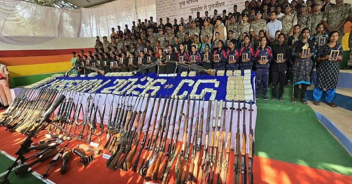 पुलिस ने बताया कि बुधवार को बस्तर के जगदलपुर में छत्तीसगढ़ के डीजीपी अरुण देव गौतम और अन्य अधिकारियों के सामने 108 माओवादियों ने आत्मसमर्पण किया। पुलिस सूत्रों के अनुसार, आत्मसमर्पण करने वाले माओवादी दंडकारण्य स्पेशल जोनल कमेटी के सदस्य थे और मुख्य रूप से जगदलपुर क्षेत्र में सक्रिय थे। आत्मसमर्पण करने वालों में छह डिविजनल कमेटी के सदस्य भी शामिल हैं, जिनमें से प्रत्येक पर 8 लाख रुपये का इनाम था। पुलिस ने बताया कि आत्मसमर्पण करने वाले माओवादियों ने 101 आग्नेयास्त्र जमा किए हैं। इनमें 7 AK-4, 10 इंसास राइफल और 4 लाइट मशीन गन शामिल हैं।