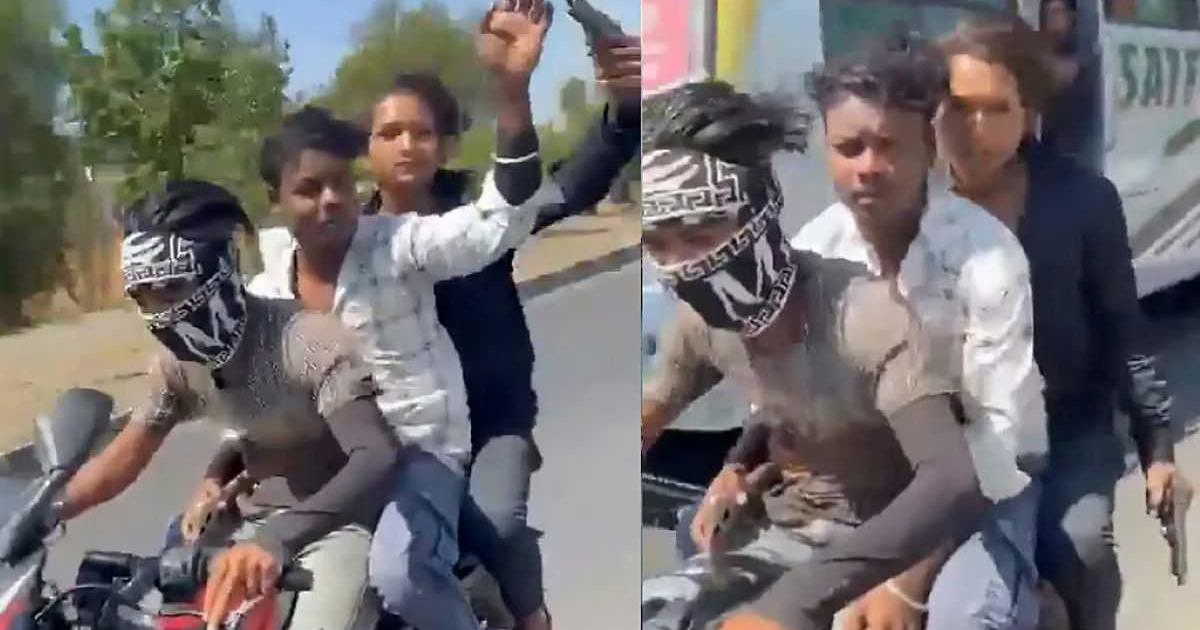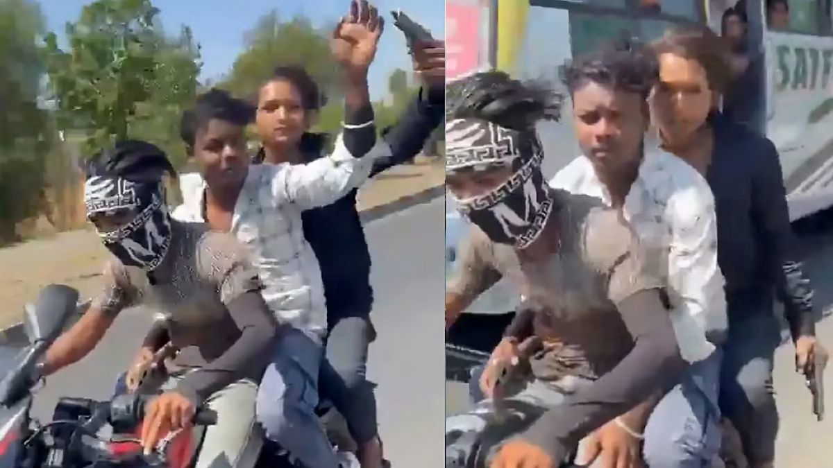 घटना घटी 14 अप्रैल को हालांकि रविवार को वह वीडियो सोशल मीडिया पर वायरल हो गया। उसमें देखा जा सकता है कि दोपहर के समय व्यस्त राष्ट्रीय सड़क पर बस और ट्रक जा रहे हैं। और उसके बीच से एक बाइक झिप-झप करती हुई जा रही है। उस पर तीन लोग बैठे हैं। किसी के सिर पर हेलमेट नहीं है। पहने हुए हैं जर्सी और पैंट। बिल्कुल पीछे एक युवक बैठा है। उसके हाथ में एक देसी पिस्टल है। बीच-बीच में गोली चलाने के अंदाज़ में वह पिस्टल घुमा रहा है।