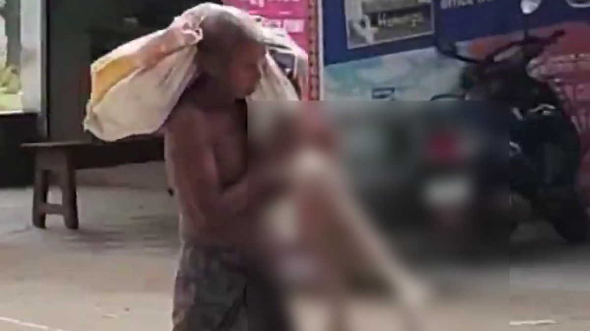 A tribal man was seen carrying his deceased sister's skeleton to the bank to withdraw money from her account, claiming to be her heir, in Odisha's Keonjhar district, on April 27.