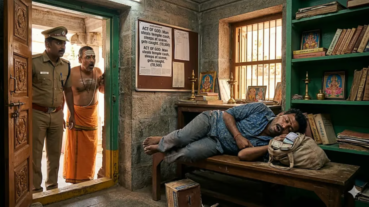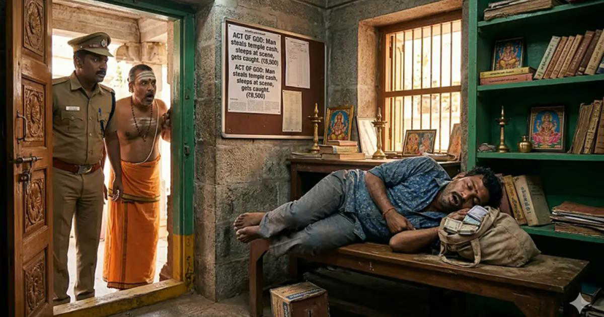 चेन्नई : तमिलनाडु के एक स्थानीय मंदिर में चोरी की एक अजीब घटना सामने आई है जहां चोर अपनी ही गलती से कुछ ही घंटों में पकड़ लिया गया। मामला अंबुरी के कुडप्पानामुडु स्थित कुझुवालवट्टम श्री भगथी मंदिर का है।