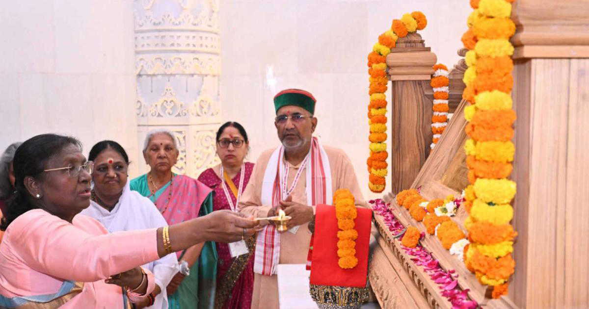 उन्होंने देशवासियों से आह्वान किया कि वे ‘घट-घट व्यापी राम’ के भाव के साथ एकजुट होकर आगे बढ़ें और रामराज्य के आदर्शों पर चलते हुए एक नैतिक और समावेशी राष्ट्र का निर्माण करें। उन्होंने विश्वास जताया कि प्रभु श्रीराम के आशीर्वाद से भारत वर्ष 2047 तक या उससे पहले ही अपने बड़े लक्ष्यों को हासिल कर लेगा। इस अवसर पर राष्ट्रपति ने सभी देशवासियों को नवरात्रि की शुभकामनाएं दीं और कहा कि अयोध्या आना उनके जीवन को कृतार्थ करने वाला क्षण है। उन्होंने यह भी कहा कि 500 वर्षों के लंबे संघर्ष के बाद राम मंदिर का निर्माण संभव हो पाया है, जो भारत की सांस्कृतिक विरासत का प्रतीक है।