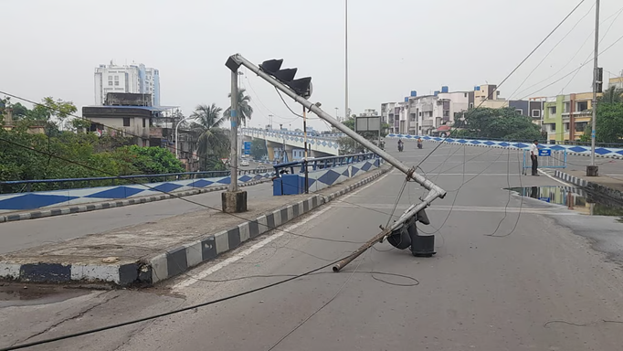 राज्य के प्रशासनिक मुख्यलाय नवान्न के पास फ्लाईओवर पर अचानक ट्रैफिक सिग्नल का पोल टूट कर गिर गया। इस वजह से इलाके में काफी देर तक यातायात बुरी तरह से प्रभावित हुई। पुलिस की ओर से बताया गया है कि पिछले कुछ दिनों से लगातार हो रही आंधी-बारिश की वजह से यह घटना घटी है।