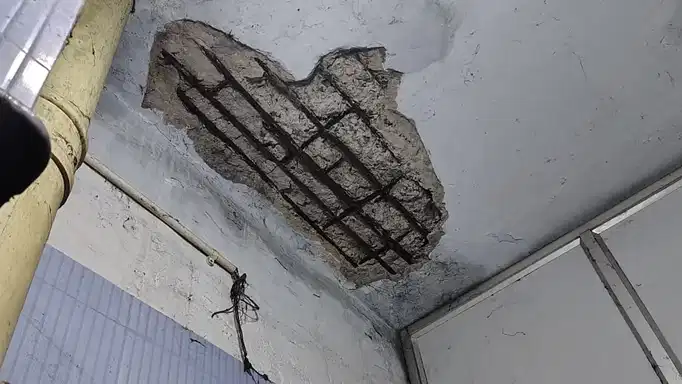 बताया जाता है कि छत के एक हिस्से के टूटकर गिरने की वजह से फर्श में भी दरार पड़ गयी है। सिर्फ इतना ही नहीं 6वीं मंजिल के खंभे और दीवार पर भी दरार नजर आने लगी है। आशंका जतायी जा रही है कि किसी भी समय विभाग में कोई बड़ा हादसा हो सकता है।