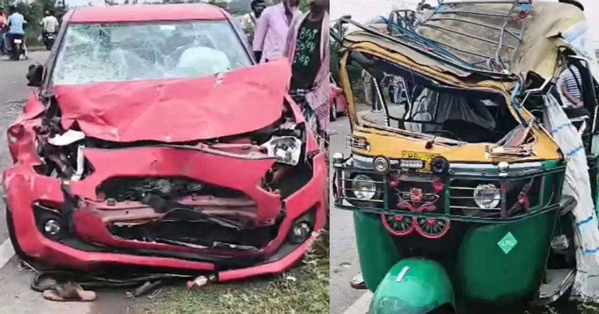 कोलकाता: पश्चिम बंगाल के उत्तर 24 परगना (North 24 Parganas) जिले में बुधवार सुबह एक दर्दनाक सड़क हादसे ने तीन लोगों की जान ले ली। बासंती हाइवे (Basanti Highway) पर हुए इस हादसे में एक ऑटो और प्राइवेट कार की आमने-सामने जोरदार टक्कर हो गई। यह दुर्घटना मिनाखान इलाके में, ग्राम पंचायत कार्यालय के पास हुई। टक्कर इतनी तेज थी कि ऑटो पूरी तरह क्षतिग्रस्त हो गया, जबकि लाल रंग की प्राइवेट कार को भी काफी नुकसान पहुंचा।