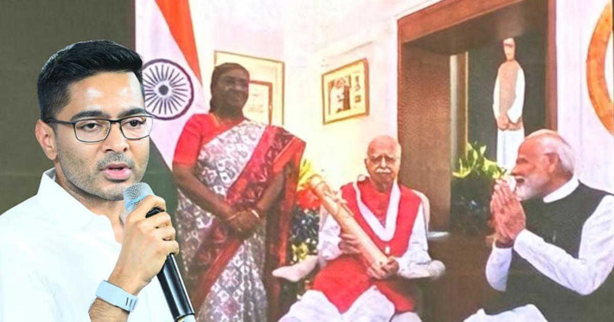 रविवार को दक्षिण 24 परगना जिले के मथुरापुर की सभा से राज्य के निवासियों के सामने अभिषेक बनर्जी ने यह फोटो साझा की जिसमें लालकृष्ण आडवाणी और नरेंद्र मोदी कुर्सी पर बैठे हुए हैं और राष्ट्रपति पास में ही खड़ी हैं। इसके साथ ही अभिषेक बनर्जी ने आरोप लगाया कि भाजपा ने राष्ट्रपति द्वारा राजनैतिक आक्रमण करवाया है।